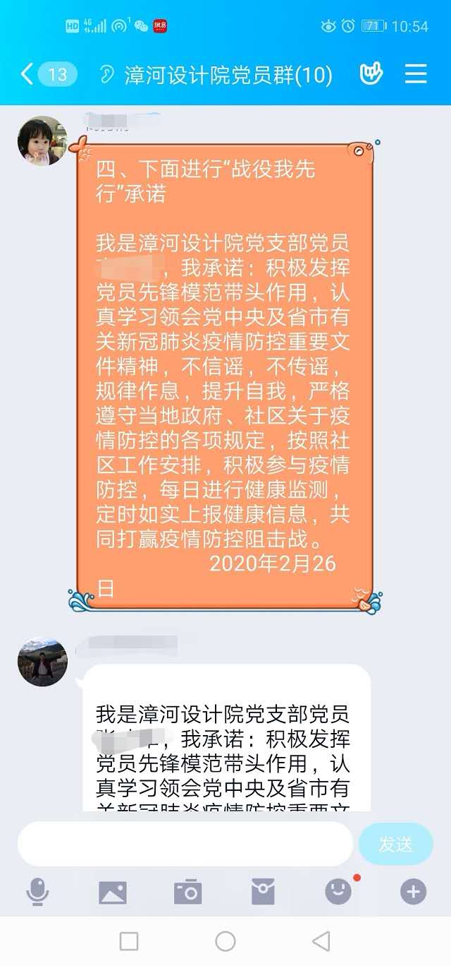 为深入学习贯彻党中央决策部署及习近平总书记关于新冠肺炎疫情防控工作重要指示精神,2月26日上午,漳河设计院党支部利用党员QQ群开展了2月份线上支部主题党日活动,此次活动主题为“疫情防控,党员先行”。